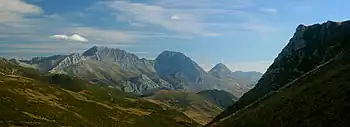 The bottom of the Babia valley is wide, surrounded by peaks that exceed 2000 meters of altitude, valleys shaped by glacierses. The Ubiña massif stands out for its altitude and majesty, with Peña Ubiña at 2414 meters, one of the highest mountains in the Cantabrian Mountains.