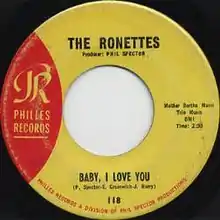 "Baby, I Love You" is a song originally recorded by the Ronettes in 1963 and released on their debut album Presenting the Fabulous Ronettes (1964). The song was written by Jeff Barry, Ellie Greenwich, and Phil Spector, and produced by Spector.