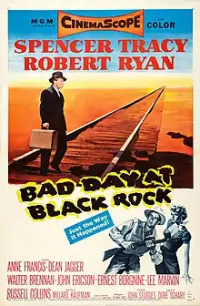 Bad Day at Black Rock is a 1955 American neo-Western film directed by John Sturges with screenplay by Millard Kaufman. It stars Spencer Tracy and Robert Ryan with support from Anne Francis, Dean Jagger, Walter Brennan, John Ericson, Ernest Borgnine and Lee Marvin. The film is a crime drama set in 1945 that contains elements of the revisionist Western genre. In the plot, a one-armed stranger (Tracy) comes to a small desert town and uncovers an evil secret that has corrupted the entire community.