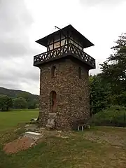 The limes ran between Bad Hönningen and Rheinbrohl, opposite the Vinxtbach, the border between Germania Inferior and Superior. At this point the limes crossed the Rhine and continued on the eastern bank. On this site a small castellum was built. In 1972 a Roman watchtower was reconstructed from archeological finds.