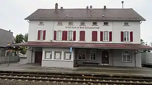 Bad Schussenried station is a railway station in the municipality of Bad Schussenried, located in the Biberach district in Baden-Württemberg, Germany.