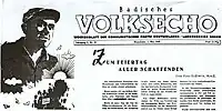 Badisches Volksecho ('Baden People's Echo') was a German language weekly newspaper. It was published from Stuttgart, West Germany between April 1946 and March 1947.[1] Later it was published from Mannheim, Karlsruhe and Stuttgart, West Germany between April, 1947 to August 11, 1956. It was published by the regional organization of the Communist Party of Germany in Württemberg-Baden.[1][2][3] Albeit initially planned as an organ for northern Baden, it became distributed in the French occupation zone as well after the banning of the south Baden organ Unser Tag.[4]