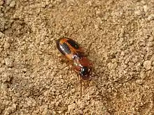 Badister bullatus is an orange and black ground beetle with a length of 5-6.55 millimeters.[3]
