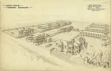 Queensland's first asylum was the Woogaroo Lunatic Asylum opened in 1865. Within a decade overcrowding was a chronic problem and a Royal Commission in 1877 recommended the establishment of asylums at Toowoomba and Rockhampton. An asylum was established at Sandy Gallop (the Challinor Centre at Ipswich) in 1878 and operated as an annexe of Goodna until 1910 when it became a separate institution. The Rockhampton asylum did not proceed and plans for the Toowoomba institution were prepared by the colonial architect John James Clark in 1885. These plans provided for a large complex with two rows of pavilion wards separated by service buildings.[1]