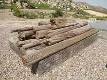 These objects were all concentrated in an area about 2 m in diameter, underneath about 1 m of rubble in the centre of the ruins, and were mixed in with earth, branches, bird carcasses and bird skeletons. The archaeologists determined that the artefacts had been housed in chambers occupying the tenth and twelfth stories of the pagoda, and that as these chambers had an opening to the outside on the south side they had thus been used as a roost for birds.[1]