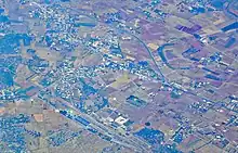 Aerial photograph of Bajzë with the station in the bottom part of the photograph.