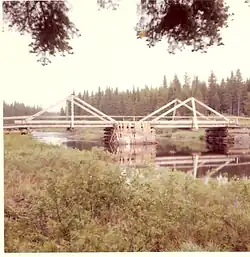 The Baker Branch drains a portion of the Maine North Woods utilized for 20th century pulpwood production. Spruce and Balsam Fir trees were bucked into 4-foot (1.2-meter) lengths beginning in 1917 and loaded onto sleds towed by draft animals or log haulers to the nearest river or lake. Log drives would float the pulpwood logs to a downstream paper mill when the snow and ice melted.[3] A problem arose because pulpwood growing around the Saint John Ponds was destined for Great Northern Paper Company's Millinocket mill on the West Branch Penobscot River. The Seboomook Lake and Saint John Railroad was built in 1921 to carry pulpwood southerly from Fifth Saint John Pond to Seboomook Lake. The railroad followed the east bank of the Baker Branch between the 4th and 5th Saint John Ponds. The railroad was dismantled and converted to a truck road in the 1950s after the canal was constructed to convey floating pulpwood from Fifth Saint John Pond to the North Branch Penobscot River.[4]
