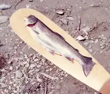 Baker Lake is the largest lake on the Baker Branch. The lake was originally populated with brook trout, yellow perch, fallfish, and white sucker. The Maine Department of Inland Fisheries and Wildlife stocked the lake with land-locked Atlantic salmon in 1967, and then with rainbow smelt in 1970 as a food source for the salmon. Canadians introduced muskellunge into Lac Frontière in Quebec; and by 1986, muskellunge had entered Baker Lake by swimming down the Northwest Branch and up the Baker Branch.[8]