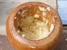 The recipe for the eyesalve consists of equal parts of garlic, crushed by mortar and pestle, and "cropleac" (another Allium species, the translation from Old English is ambiguous; modern reproductions have used onion or leek) and equal parts (the text is ambiguous as to whether these ingredients are equal with the Allium components) of wine and oxgall (bovine bile). The mixture is left to stand in a brass or bronze container for nine days before being wrung through a cloth and clarified. The text states that the medicine should be stored in a horn and applied to the infected area with a feather at night time. The leechbook describes the mixture as se betsta læcedom (transl. the best medicine).[1]: 1