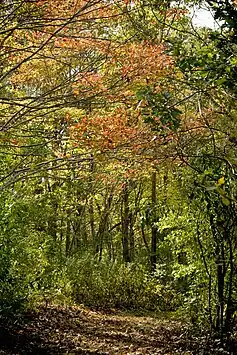 • Skyline Drive Trail - (2 miles (3.2 km)) is an easy trail marked with white blazes. It connects with Butterfly Trail and passes through fields that are in various stages of ecological succession, gradually changing from the fields cleared by farmers back into forest.[6]