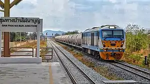 Ban Phai Na Bun Junction railway station is a railway station located in Taling Chan Subdistrict, Mueang Saraburi district, Saraburi province. It is a class 3 railway station located 162.811 km (101.2 mi) from Bangkok railway station. It opened on February 3, 2020 as part of the double tracking of the Phra Phutthachai Freight Line. It acts as a junction for the newly-constructed chord line connecting the station and Nong Bua Junction. Before this, trains had to switch directions at Kaeng Khoi Junction if they were travelling in the direction of Ban Phachi Junction. As it is a freight only station, no passenger trains operate at the station.[1][2]