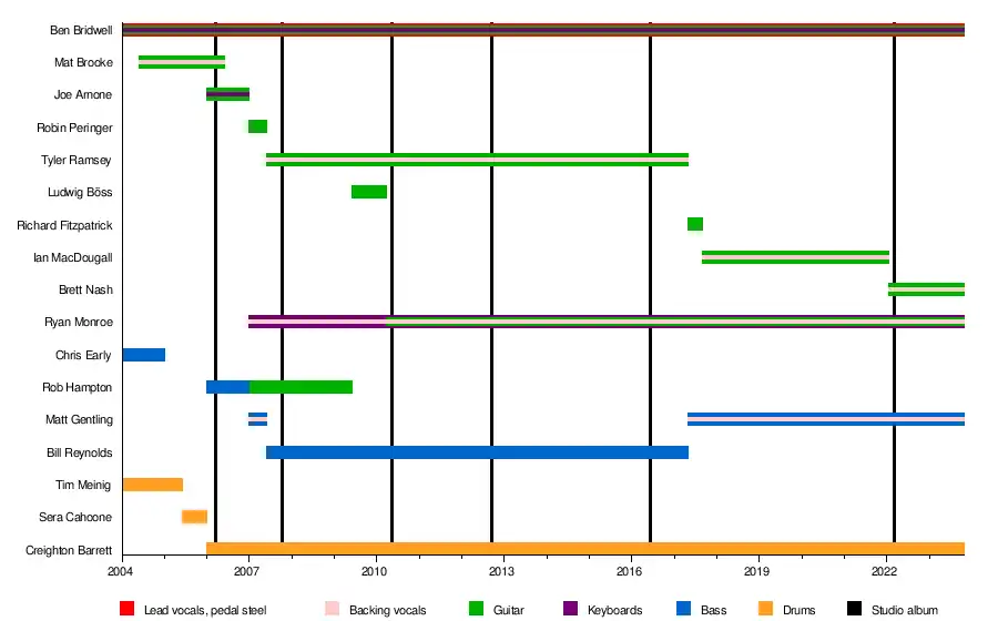 For ten years, the band's most stable line-up featured guitarist Tyler Ramsey and bassist Bill Reynolds, who recorded and performed with the band between 2007 and 2017, before acrimoniously departing.