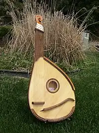 A bandura (Ukrainian: бандура) is a Ukrainian plucked-string folk-instrument. It combines elements of the zither and lute and, up until the 1940s, was also often called a kobza. Early instruments (c. 1700) had 5 to 12 strings and resembled lutes. In the 20th century, the number of strings increased initially to 31 strings (1926), then to 56 strings – 68 strings on modern "concert" instruments (1954).[2]