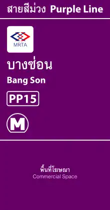 Bang Son station (Thai: สถานีบางซ่อน, pronounced [sā.tʰǎː.nīː bāːŋ sɔ̂n]) is a Bangkok MRT station on the Purple Line on Bangkok-Nonthaburi Road in Bang Sue District, Bangkok. It provides transfers to SRT Light Red Line at Bang Son station, and the State Railway of Thailand at Bang Son halt.