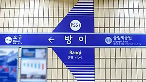 Bangi Station is a subway station on Seoul Subway Line 5 in Songpa-gu, Seoul.[1][2][3]