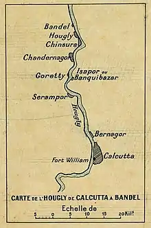 Bankipur was an ancient village on the Hugli river located in what is now West Bengal, north of Barrackpore, a little north of Ishapore. It is now a suburb of Barrackpore and is not to be confused with Bankipur (Khejuri), a village located on the coast (at 21°46′N 87°52′E / 21.76°N 87.86°E).[1]