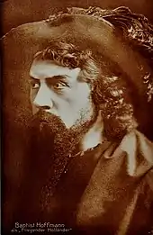 He was a member of the Hamburg Opera from 1894 to 1897. From 1895, he made guest performances in Germany, Austria, and the Netherlands, including as Hans Sachs in Wagner's Die Meistersinger von Nürnberg at the Berlin Court Opera and soon afterwards as Lysiart in Weber's Euryanthe.[2] The audience regarded him as a successor of Franz Betz, the first Wotan at the Bayreuth Festival. In 1897, Hoffmann almost moved to the Vienna Court Opera with Gustav Mahler, Kapellmeister at the Hamburg Opera,[2] but instead moved to the Berlin Court Opera as first baritone,[2] and he remained there until 1919.[1] He took part in several world premieres there, including Chabrier's Briséïs (in German) in 1899, Lortzing's Regina the same year, d'Albert's Kain in 1900, Leoncavallo's Der Roland von Berlin in 1904, and Humperdinck's Die Heirat wider Willen in 1905. In 1906, he appeared as Jochanaan in the house's first production of Salome by Richard Strauss.[1]