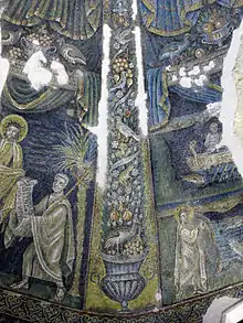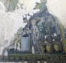 - 1 2 3 4 5 Jensen, Robin (2010). Living Water: Images, Symbols, and Settings of Early Christian Baptism. Leiden: Brill. pp. 277. ISBN 9789004188983.