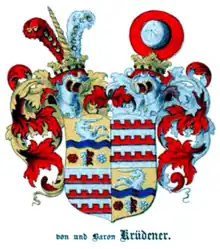 Beate Barbara Juliane Freifrau[1] von Krüdener (née Freiin[2] von Vietinghoff genannt Scheel; 22 November [O.S. 11] 1764 – 25 December [O.S. 13] 1824), often called by her formal French name, Madame de Krüdener, was a Baltic German religious mystic, author, and Pietist Lutheran theologian who exerted influence on wider European Protestantism, including the Swiss Reformed Church and the Moravian Church, and whose ideas influenced Tsar Alexander I of Russia.