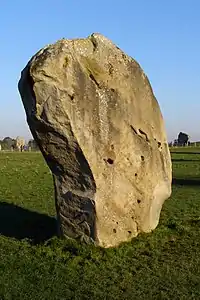 The body was found underneath a buried megalith by archaeologist Alexander Keiller in 1938. It was dated by coins to the early 14th century, and identified as a barber surgeon by a pair of scissors and a medical-looking probe. The stone was re-erected by Keiller. Keiller assigned the stone as Stone 38, with Isobel Smith renumbering as Stone 9.[1] Many stones of the Avebury stone circle had been buried, presumably as a result of attempts to de-paganise the site or to clear land for agriculture.