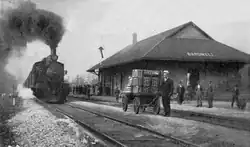 A train arrives at Bardwell's Illinois Central station, circa 1910