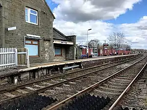 The old station building on the platform is now a private dwelling. It was auctioned to the public, and was featured on the BBC programme Homes Under the Hammer, a show about buildings which are auctioned to the public and redeveloped.