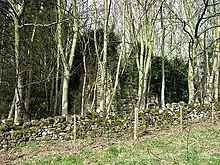 The entrance was in the east wall, with three steps beyond leading down to the ground floor. A staircase ran southward in the thickness of the wall towards the south east angle, and there are traces of this.[2]