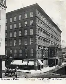 Barnum's St. Louis Hotel was a historic 6-floor hotel built in 1854.[1] The Barnums were a family of hotel keepers who had run the famous Barnum's Hotel in Baltimore.[2] This building was located at the 2nd and Walnut Streets in St. Louis, Missouri, and has been considered to be St. Louis' first high-rise building. The hotel was designed by architect George I. Barnett.