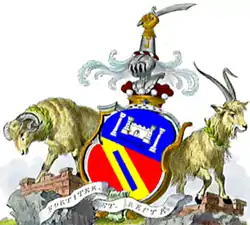 • Supporters: Dexter, a ram; sinister, a goat; each wreathed with flowers round the neck.