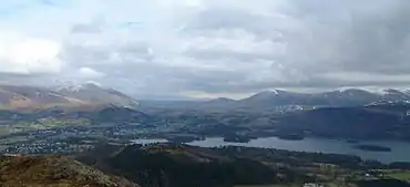 The view easterly from the summit takes in Derwentwater and the vale of Keswick.