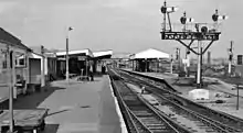 Barry railway station (Welsh: Y Barri) is one of three stations serving the town of Barry, Vale of Glamorgan in South Wales. This one, Barry Town, is preceded by Barry Docks and Cadoxton stations on the Barry Branch which runs from Cardiff Central to a fourth station at Barry Island, the terminus. Barry is also the junction at the start of the Vale of Glamorgan Line which serves Rhoose and Llantwit Major and terminates at Bridgend.