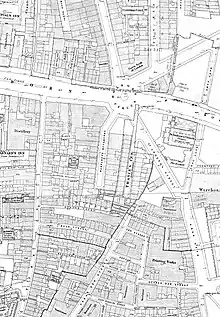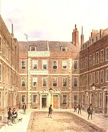 The street was once home to the Farringdon Dispensary and Lying in Charity, shown in a watercolour drawing by Thomas Hosmer Shepherd of 1858.[1]
