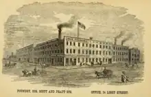 Horace W. Robbins died of illness on August 12, 1878, leaving David Bartlett the sole partner.[70] Two years later, in 1880, Thomas J. Hayward bought out the interest of the late Robbins and joined the company as a partner, leading to its renaming again as Bartlett, Hayward & Co.[8][71] Edward L. Bartlett, David Bartlett's son, was also made a partner in the company in the same year.[72] By 1889, the shops near Mount Clare had expanded even further.[73] Around this time, Bartlett, Hayward & Co. obtained several major national contracts, producing the heating and cooling systems for Johns Hopkins Hospital, New York Post Office, the New Orleans Custom House and the San Francisco Mint.[23] In 1899, David L. Bartlett died, and Edward Bartlett assumed his father's role as Senior Partner.[74][75]
