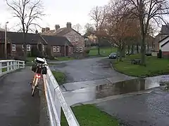 The village lies 1 mile (1.6 km) east of the old Roman road of Dere Street.[3][4] The village of Newton Morrell is the closest to Barton at just 0.77 miles (1.24 km) to the north-east and Stapleton 2 miles (3.2 km) northward. Other settlements that are close by include Melsonby 2 miles (3.2 km) to the west, Middleton Tyas 1.7 miles (2.7 km) to the south and Aldbrough St John 2.4 miles (3.9 km) to the north-west. Barton Beck flows north through the centre of the village creating a ford across Mary Gate. It joins Clow Beck on the north side of the nearby A1(M) and is part of the tributary system of the River Tees.[7]