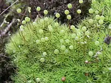 Bartramia pomiformis, the common apple-moss,[1] is a species of moss in the Bartramiaceae family. It is typically green or glaucous in hue, although sometimes it can appear yellowish. The stems extend from a half cm to 8 cm, with narrowly lanceolate to linear-lanceolate leaves 4 – 9 mm long.[2] The leaves have a nerve and are toothed. They are curled when dry but stick out when moist.