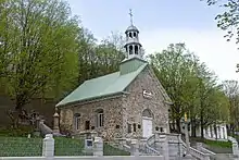 The Basilica of Sainte-Anne-de-Beaupré (French: Basilique Sainte-Anne-de-Beaupré) is a basilica set along the Saint Lawrence River in Quebec, Canada, 30 kilometres (19 mi) east of Quebec City, and one of the eight national shrines of Canada.[2] It has been credited by the Catholic Church with many miracles of curing the sick and disabled. It is an important Catholic sanctuary, which receives about a half-million pilgrims each year. Since 1933 they have included members of the Anna Fusco Pilgrimage from Connecticut.[3] The peak period of pilgrimage is around July 26, the feast of Saint Anne, the patron saint of sailors.