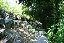 The Jardin des Dauphins (or Princes Garden) was purchased in 1785 by Jean-Baptiste Dolle, a trader from Grenoble.[15] It is situated at the foot of the hill, perched on a cliff close to the Porte de France, and is made up of a series of six terraces with retaining walls linked by steps, passageways and paths. Restored in 1909 by the architect Ginet, the garden began to take the form that we know today. In 1912, an orientation table was installed by the Touring Club of France, and the garden was subsequently refurbished again in 1960.