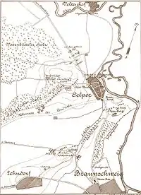 The Black Brunswickers were outnumbered and were also threatened by an invading Dutch division from Halberstadt. In order not to fall between the two divisions, the Duke decided to face the Westphalians north of Brunswick, near the village of Ölper, to attempt to break through to the north.