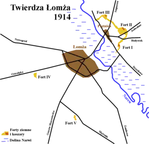 ![]() World War I forts of Łomża Fortress formed the backbone of Polish defence in 1939 | |||||||