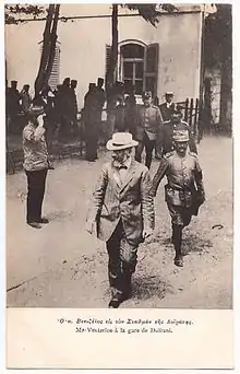The Doiran Lake was at the right wing of the Bulgarian line of defense. The 2nd Bulgarian Army was responsible for the defense of this sector.[6] The Bulgarian artillery was for some time successful against the Greek attack. When the Evzones captured the train station of Doiran, fearing that they would be encircled, retreated further north.[1] Following orders by King Constantine, the Greek army captured Gevgelija, Meleniko, Petrich and advanced in the Bulgarian territory aiming to capture Sofia.