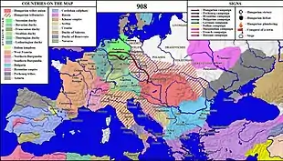 - 1 2 Bóna, István (2000). A magyarok és Európa a 9-10. században ("The Hungarians and Europe in the 9th-10th centuries") (in Hungarian). Budapest: História - MTA Történettudományi Intézete. p. 36. ISBN 963-8312-67-X.