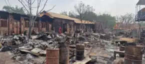 By 17 April, the El-Geneina hospital had closed due to the fighting.[33] At the time, the death toll and exact location of fighting in Geneina were impossible to verify, due to fog of war, and the fogginess of the sides.[34] While some sources stated fighting broke out between the SAF and RSF, others claimed clashes were actually between Arabs and the non-Arab Masalit. Ahmed Gouja, a journalist in Nyala, corroborated the claims of the Arab-Masalit clashes, and that civilians had stolen weapons from the police station to protect themselves and their neighborhoods.[35] OCHA reported that UN offices were being looted in the city, and markets, homes, and offices of other humanitarian organizations were being torched. On 23 April, Sudanese Armed forces attempted to recapture parts of the city from the RSF, but were pushed back into the army headquarters.[36]