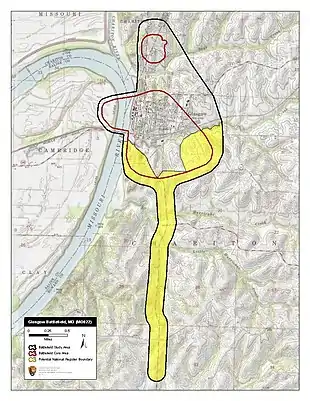 Map of Glasgow Battlefield core and study areas by the American Battlefield Protection Program