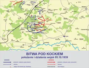 The Battle of Kock was the final battle in the invasion of Poland at the beginning of World War II in Europe. It took place between 2–5 October 1939, near the town of Kock, in Poland.[2]:12,84