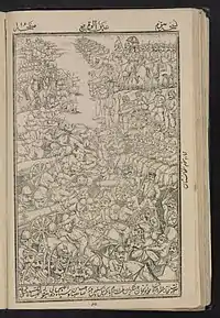 Depiction of the battle in a near-contemporary Persian source, from the Collected Works of Riyazi