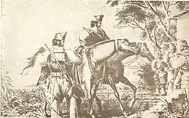Otto Philipp Braun, General Felipe Braun, was German in origin. In 1820 he joined the army of Simón Bolívar during the Spanish American wars of independence, rising to a senior position.[2] He entered the service of Bolivian President Andrés de Santa Cruz in 1830. As a Divisional General he accompanied Santa Cruz in the June 1835 invasion of Peru, in which the Bolivia-Peru Confederation was formed. He was to lead the Bolivian troops to victory at Montenegro.[3] Francis O'Connor was an Irish volunteer who became Bolívar's chief of staff in the "United Army of Liberation in Peru". In 1826 he was appointed military governor of the Bolivian town of Tarija.[4]