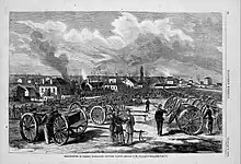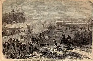 ![]() 3rd brigade, 1st division of the XVI Corps attacking the Rebel line, published in Harper's Weekly | |||||||
