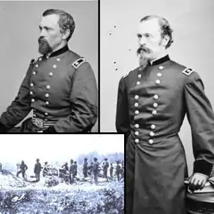 Clockwise from upper left: Brigadier General August V. Kautz, Brigadier General James H. Wilson, Confederate artillery firing across the river