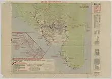 The Allied planners possessed detailed intelligence on Tarakan and its defenders. This intelligence had been gathered from a variety of sources which included signals intelligence, photographic reconnaissance flights and Dutch colonial officials.[17] Tarakan was the Australian Services Reconnaissance Department's (SRD) first priority from November 1944.[18] Prior to the invasion, I Corps requested that the SRD provide intelligence on Japanese positions in northern and central Tarakan. A five-man strong party landed on the island on the night of 25/26 April and successfully reconnoitered the defences on Tarakan's north coast, though the operative who was assigned to the centre of the island became lost and did not reach this area. The SRD operatives withdrew from Tarakan on the night of 29/30 April and landed on the mainland of Borneo. They were unable to transmit the intelligence they had collected, however, as their radio set malfunctioned. Members of the party eventually landed within the Allied beachhead on Tarakan on 3 May to report to the 26th Brigade, but Whitehead was disappointed with the results of this operation and made no further use of the SRD during the battle.[19]