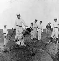 Nie Shicheng and Ma Yukun commanded the forces against the Alliance, raining precise and intense ordnance against the Tianjin concessions.[12] The losses suffered by the Alliance in battle was mainly due to artillery bombardment since the Chinese army carried it out with extreme precision and in a superb manner. They hid well, employed good bulwarks of defense by using the landscape and went on the offensive in a dauntless manner and would continue battling until the end.[13] The Chinese artillery fire was so accurate that the besieged westerners falsely believed rumours that it was Russian artillery instructors who were being forced to fire the artillery after being kidnapped at bayonet point.[14]